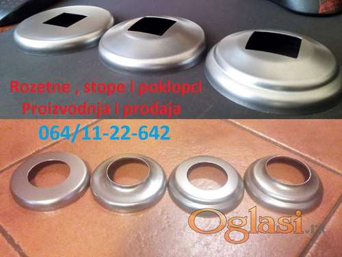 Tekst oglasa: <p>Proizvodnja i prodaja na veliko i malo svih vrsta rozetni , poklopaca i stopa za sve ostale dimenzije cevi i kutija za kovane ograde , stepeništa , gelendere , vodovodne cevi, radijatorske cevi, terase i ostalu bravariju.<br /><strong>Metalne - celicne , Inox - Prohrom , Aluminijum</strong><br /> 064/11-22-642</p> <p><strong>Metalne , aluminijumske i Inox ( Prohrom ) rozetne , poklopci i stope.<br /> Jednostepene, dvostepene i trostepene.<br /> Više dimenzija i oblika rozetni.<br /> Anker plocice fi 90mm.</strong></p> <p>Ploce za baštenske stolove (fi 500- 900) kao i postolja (stope fi 500) za stolove.<br /> Danca za auspuhe kao i flanšne.<br /> Šaljem kurirskim službama, licno preuzimanje ili dovozim.<br /> Može placanje preko racuna.</p> <p>Pogledajte i ostale moje oglase, ono što nema u ponudi ne znaci da se ne može napraviti,<br /> pozovite i pitajte!</p> |
