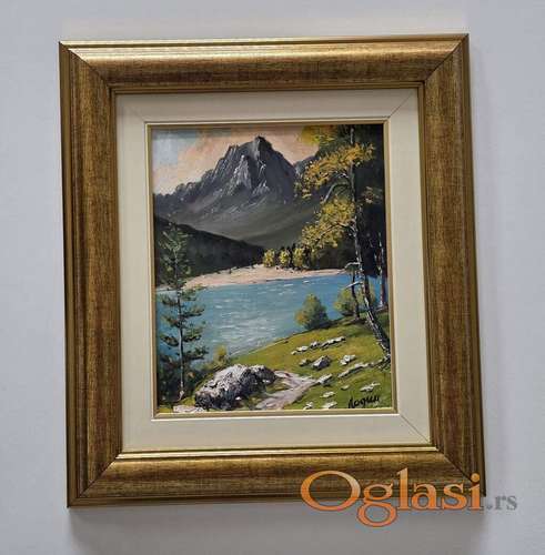 Tekst oglasa: <p>Ulje na lesonitu Alpski pogled, prelepo umetnicko delo. Slika je uramljena u jako lep ram, dimenzije slike sa ramom 49 x 44. Privatna kolekcija.</p> |