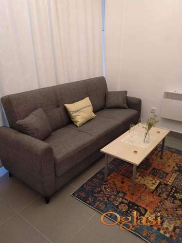 Tekst oglasa: <p>Direktno od vlasnika. Bez provizije! Stan + parking mesto uključeno u cenu je 34 metra, soba je 24 metra podeljena na zone (spavaća + dnevna soba), kuhinja (nije u prostoriji), kupatilo sa tuš kabinom. Inverter klima. Bojler sa elektronskom regulacijom režima zagrevanja vode. Kuća je izgrađena 2015. godine i okružena je privatnim vilama, a sam stan je „nizko prizemljen“. Sva infrastruktura je tu i sve je u blizini. Direktno od vlasnika Infostan 1300, struja oko 4000 (kako se koristi). ul. Predraga Simića ( autobus 26,18,50 "Naselje Braće Jerković" do centra grada 20 minuta autobusom 26) </p> |