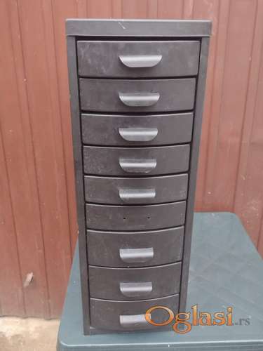 Tekst oglasa: <p style="margin-left:0;margin-right:0;">Metalni ormarić sa 9 fioka donešen iz Nemačke</p> <p style="margin-left:0;margin-right:0;">Dimenzije visina 80 cm</p> <p style="margin-left:0;margin-right:0;"> širina 28 cm</p> <p style="margin-left:0;margin-right:0;"> dubina 43 cm</p> <p style="margin-left:0;margin-right:0;">Pogledajte i ostale moje ormariće klikom na Svi oglasi</p> |