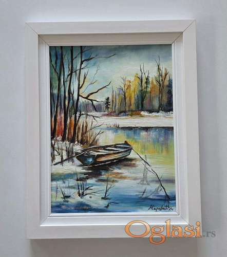 Tekst oglasa: <p>Ulje na platnu Zimsko jutro na reci, prelepo umetnicko delo. Slika je uramljena u jako lep ram, dimenzije slike sa ramom 50 x 40. Privatna kolekcija.</p> |