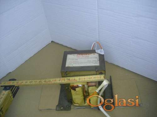 Tekst oglasa: <p>Trafo je od mikrotalasne.<br /> Primar je na 220V a sekundar nekoliko hiljada volti.<br /> Bio je na LG mikrotalasnoj ali odgovara i za druge proizvodjace.<br /> TIP Class 220</p> <p>Imam jos dosta delova za mikrotalasne.</p> <p>Trafo je dosta jak i moze da se iskoristi i za pravljenje punkt aparata, manjeg aparata za varenje ili nekih visokonaponskih projekata kao sto je "lichtenberg fractal wood burning" ili ozbiljnog punjaca za akumulatore 50A-80A.</p> <p>Za punkt aparat je potrebno skinuti visokonaponski sekundar i namotati nekoliko namotaja debele zice, imate uputstva na internetu.</p> <p>Ukoliko bi uzeli vise komada moguca je korekcija cene.</p> <p>U zavisnosti za cega ce se koristiti obicno uz trafo dajem i neke dodatne delove na poklon koji Vam mogu koristiti.</p> <p>Uglavnom imam na stanju i sledece modele trafoa:</p> <p>Class 220<br /> GAL 700E sve verzije<br /> GAL 800E sve verzije<br /> GAL 900E sve verzije<br /> XB 700<br /> MD 701EMR 1<br /> MD 801EMR 1<br /> 6170W<br /> JHT R800<br /> BWL 700E<br /> BWL R800E<br /> 6170W1D102A<br /> Class 200<br /> KH 708 EME<br /> Y200 STC<br /> Class H<br /> SHV 745EC1<br /> 6170W1D074F<br /> 2607ZPY<br /> 6170W1D057Y<br /> BWL R800E<br /> KHT R805ELG<br /> C2B71068B<br /> YSKJ 900NTCR<br /> YSKJ 800NTC<br /> MHT 5002<br /> KHT R701ELGA<br /> 6170W1D098L<br /> MDT 851EMR<br /> DW 4822 V1<br /> MDT 851EMR<br /> KHT R701ELGA<br /> KHT R805ELGA<br /> 6170W1D057N<br /> DANGER - traze mi ljudi i ovaj model :)<br /> ...</p> <p>Za vise informacija mozete me kontaktirati na 064/9797622.</p> <p>Slanje postom 420din (nakon uplate na racun) ili slanje pouzecem oko 700din.</p> |