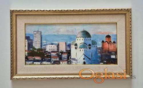 Tekst oglasa: <p>Ulje na platnu Beograd na dlanu, prelepo umetnicko delo. Slika je uramljena u jako lep ram, dimenzije slike sa ramom 60 x 35. Privatna kolekcija.</p> |