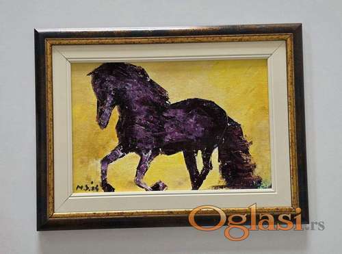 Tekst oglasa: <p>Ulje na platnu Konj, prelepo umetnicko delo. Slika je uramljena u jako lep ram, dimenzije slike sa ramom 40 x 30. Privatna kolekcija.</p> |