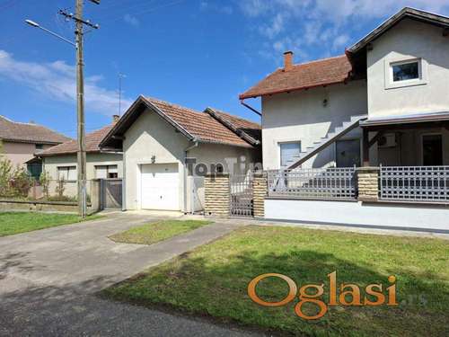 Tekst oglasa: Kuća moderne gradnje u Bajmoku 263 m2 korisne površine koju čine suteren, visoko prizemlje i potkrovlje, 6 soba, tri kuhinje, 2 kupatila, parketirana, grejanje je etažno na pelet, na placu od 1082 m2. Pored kuće nalazi se pomoćna zgrada površine 65 m2. |