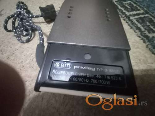 Tekst oglasa: <p>MINI PEGLA za putovanje na paru,nema ostecenja ploca kao nova,sklapa se i rasklapa lako...idealna za put i male pocetnike ...marka nemacki Privileg</p> |