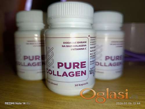 Tekst oglasa: <p>Prodajem čist kolagen u kapsulama. Služi za negu kože, kostiju i generalno za poboljšanje zdravlja, imuniteta i ima razne benefite za naš organizam. Prodaje se 6 bočica, u svakoj bočici se nalazi 30 kapsula. Provereno je najbolji način za jačanje imuniteta, kostiju, kože i zdravlja. Bezbedan je za korišćenje nezavisno od tipa kože, jačine kostiju ili starosnog doba u kojem se nalazite. Najbolji način korišćenja je uzimati jednu kapsulu ujutru pre prvog obroka. Zbog izuzetno visoke cene čistog kolagena mislim da je cena od 6000 din. dobra cena za 6 bočica po 30 kapsula. </p> |