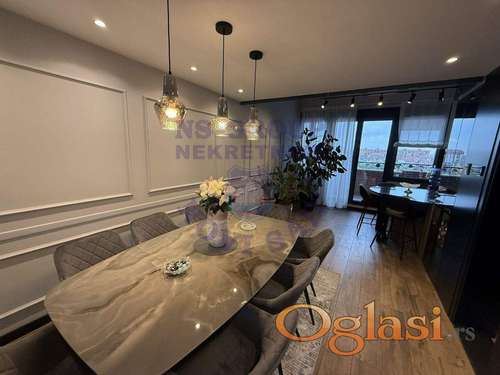 Tekst oglasa: <p>RETKO U PONUDI! Lux porodičan stan na vrlo atraktivnoj lokaciji. Blizina sajma, bolnice, terena. Izuzetno opremljen stan, sa kompletnim nameštajem. U stanu djakuzi, sauna, prelepa terasa. Korišćeni najluxuzniji materijali i oprema tokom gradnje.</p> |
