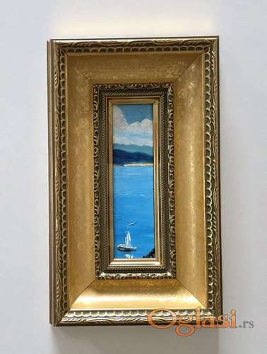Tekst oglasa: <p>Ulje na platnu More, prelepo umetnicko delo. Minijatura. Slika je uramljena u jako lep ram, dimenzije slike sa ramom 30 x 18. Privatna kolekcija.</p> |