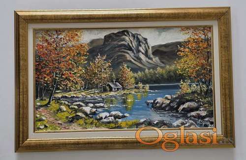 Tekst oglasa: <p>Ulje na lesonitu Planinska oaza tisine, prelepo umetnicko delo. Slika je uramljena u jako lep ram, dimenzije slike sa ramom 61 x 40. Privatna kolekcija.</p> |