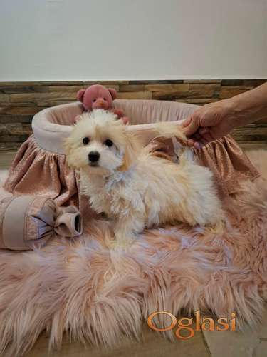 Tekst oglasa: <p>Maltipu ženka rođena 06.11.2025, primila sve tri vakcine. <br /> Prelepog krzna, pravilne građe i zubala.<br /> Majka mini maltezer, otac toj pudla, u vlasništvu prodavca.<br /> Gaje se u kući, uz svu potrebnu negu.<br /> Uz štene dobijate zdravstvenu potvrduo vakcinaciji i čišćenju,<br /> i opširno otkucano uputstvo o svemu što Vam je neophodno za odgajanje psa.<br /> Registrovana odgajivačnica FCI/KSS-7156.<br /> BEZ PORUKA, SAMO POZIV.<br /> Beograd, 063290770<br /> </p> |