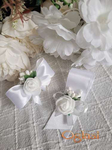 Tekst oglasa: <ul><li>Cvetići za kićenje svatova</li> <li>Bela satenska traka, bela ružica i bobice</li> <li>Po Vašoj želji možemo menjati i kombinovati boje i detalje</li> <li>Rever - 27 dinara</li> <li>Narukvica - 32 dinara</li> <li>Samolepljiva traka, lastiš za narukvicu uključeni su u cenu</li> <li>Vreme izrade po dogovoru</li> <li>Ukoliko su cvetići jako hitni, izlazimo u susret</li> <li>Za više informacija kontaktirajte nas putem poziva na broj, porukom ili putem Viber-a</li> </ul> |