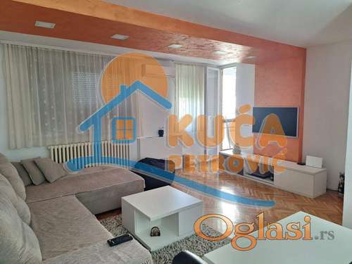 Tekst oglasa: Izdaje se lep i komforan stan u mirnom delu grada. Kompletno je opremljen nameštajem i tehnikom (Nova veš mašina i nova mašina za pranje sudova). Sastoji se od hodnika, dnevnog boravka sa trpezarijom i kuhinjom, spavaće sobe, kupatila i velike terase (lodje). Zgrada nije do ulice i okružena je zelenom površinom, parkom za decu, terenima za sport. U blizini se nalazi osnovna škola Stefan Nemanja, nekoliko dečijih mobilijara i terena, par većih supermarketa i Lidl. Zgrada ima dva redovno održavana lifta (manji i veći) i poseduje interfon. Iza zgrade je veliki parking koji je uvek dostupan. Lepo je osvetljen i orijentisan. Izdaje se ozbiljnim zakupcima na duži vremenski period. Obavezan depozit u visini jedne mesečne kirije. Agencijska usluga je 50% od prve mesečne zakupnine. Za više informacija javite se na telefon agencije. Ovo je samo deo naše ponude.Naša preporuka Vaš izbor! Ovu kao i druge nekretnine možete pogledati na našem sajtu. Čekamo Vas! |