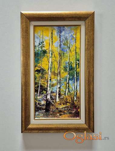 Tekst oglasa: <p>Ulje na platnu Jesenje boje, prelepo umetnicko delo. Slika je uramljena u jako lep ram, dimenzije slike sa ramom 44 x 27. Privatna kolekcija.</p> |