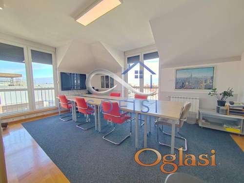 Tekst oglasa: Novi Sad, Centar, ulica Sremska. Odličan, nov poslovni prostor na VI (poslednjem spratu) nove zgrade renomiranog investitora sa dva lifta. Blizina Spensa, Osnovnog suda, katastra, strogog centra grada. Ovaj poslovni prostor prostire se na 147m2. Odlikuju ga funkcionalan raspored, obilje dnevne svetlosti i velika, uređena krovna terasa od 30m2 (nije uračunata u kvadraturu radnog prostora). Prostor čine ukupno 4 kancelarije. Jedna ogromna open space kancelarija u sklopu koje se nalazi šankom ograđena kuhinja opremljena kvalitetnom belom tehnikom marke Bosch. Iz open space kancelarije se ulazi u drugu kancelariju sa sopstvenim toaletom. U ostale dve kancelarije se ulazi iz dugačkog ulaznog hodnika. Pored navedenog, prostor poseduje kupatilo sa kadom i ostavu. Ugovor o zakupu sklapa se sa pravnim licem. Na navedenu cenu zakupa dodatno se plaća PDV. Inventar sa fotografija (osim opremljene kuhinje i dva klima uređaja) nisu predmet izdavanja, ali postoji mogućnost otkupa od trenutnog zakupca. Useljiv od 01.03.2026. godine. Bez obezbeđenog parkinga. (Sofisi home doo Novi Sad, Novi Sad, Reg. broj posrednika 2011). Agencijska provizija iznosi 100% od cene prve zakupnine. Kontakt tel.: 065/8557209 |