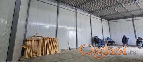 Tekst oglasa: <p>Izdaje se panelna hala za magacin na Klisi.</p> <p>Površina hale je 96m2</p> <p>Dimenzije hale su 13,80mx6,90m</p> <p>Visina hale je u najnizoj tački 4m u najvišljoj 4,5m</p> <p>Širina ulaznih vrata je 3m a visina 3,15m</p> <p>Trofazna struja,alarm</p> <p>Kontak 0658888080</p> |