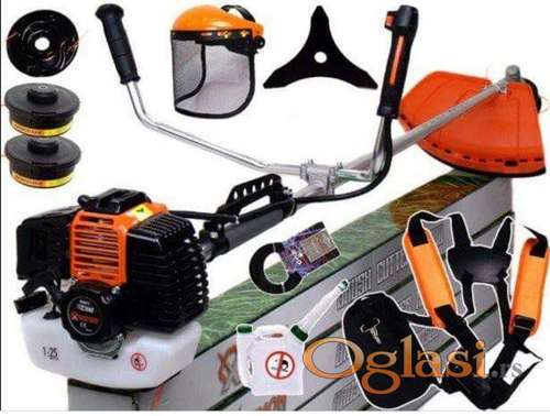 Tekst oglasa: <p><strong>Sadržaj paketa opreme DEMON Motorni trimer RQ580</strong></p> <ul><li>Trokraki nož 1kom</li> <li>Glava sa strunom 2 kom</li> <li>Oprtač na dva ramena 1 set</li> <li>Metalni disk za strunu)</li> <li>Zaštitni vizir</li> <li>Alat za sastavljanje i održavanje trimera</li> <li>Struna 15 metara,</li> <li>Bočica za gorivo sa dozerom</li> <li>PVC postolje(štitnik za rezervoar),</li> <li>Detaljno uputstvo na srpskom jeziku</li> <li><strong>Garantni list 2 godine!</strong></li> </ul> |