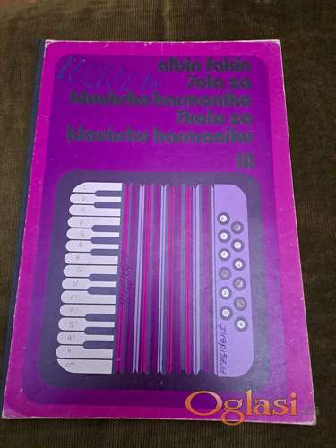 Tekst oglasa: <p>Albin Fakin, Škola za klavirski harmoniku III (Državna založba Slovenije, Ljubljana, 1975). Dvojezično izdanje na srpskom i slovenački jeziku. 70 strana. Stanje odlično. Cena: 600 dinara. Tel.060-58-58-153 </p> |