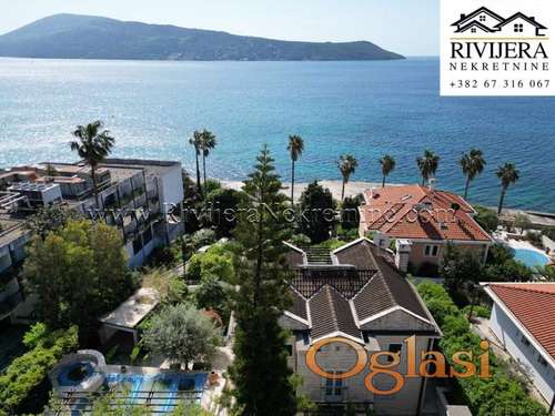 Tekst oglasa: <p> </p> <p>Na prodaju luksuzna vila na samoj obali mora, smještena uz šetalište Pet Danica u Herceg Novom. Vila ukupne površine 216 m² sastoji se od komfornog cetvorosobnog stana sa tri moderne kupatilske jedinice, prostranog dnevnog boravka, kuhinje i dvije terase sa kojih se pruža očaravajući pogled na more. U sklopu imanja nalazi se i pomoćni objekat površine 28 m².</p> <p>Na uređenoj parceli od 647 m² smješten je bazen, parking prostor, kao i pažljivo uređeno dvorište bogato zelenilom koje obezbjeđuje visok nivo privatnosti i mira. Vila je građena od visokokvalitetnih materijala, sa posebnim akcentom na kamen, što joj daje autentičan mediteranski karakter. Nekretnina se nalazi u izuzetno atraktivnom i luksuznom dijelu Herceg Novog, idealnom kako za život tako i za investiciju. Udaljenost od Starog grada Herceg Novog iznosi svega 500 metara, dok su aerodromi Tivat i Dubrovnik udaljeni po 25 km. Cijena: 2.500.000€</p> |