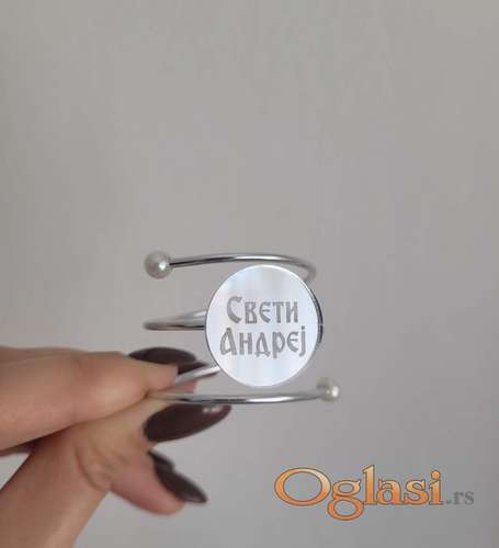 Tekst oglasa: <ul><li>Prsten za salvetu veliki</li> <li>Metalna osnova</li> <li>Može boje srebra i boje zlata</li> <li>Možemo gravirati natpis po Vašoj želji</li> <li>Može pisati Srećna slava ili natpis slave</li> <li>Prečnik prstena oko 3,5cm</li> <li>Rok izrade 1-3 dana</li> <li>Šaljemo Post expressom</li> <li>Postoji mogućnost izrade većih količina</li> <li>Više informacija možete dobiti pozivom na broj ili putem Viber-a</li> <li> </li> </ul> |