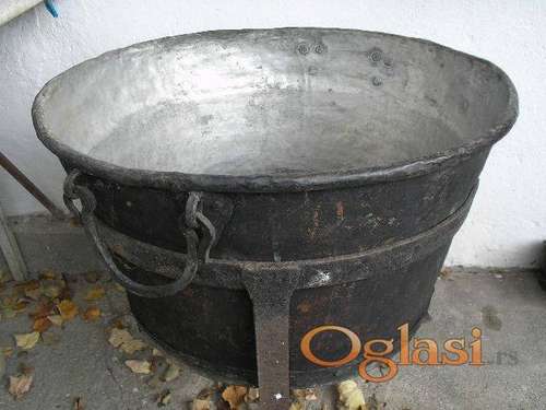 Tekst oglasa: <p>Bakarni kazan zapremine 160 litara.Izrađen u majstorskoj radionici poznatih valjevskih kazandžija.Masivan i težak sa debelim zidovima i debelim dnom od čistog bakra. </p> <p>Pogodan za topljenje masti i pravljenje čvaraka od više tovljenika istovremeno s obzirom da je zapremina 160 litara. a pogoduje domaćinima i mesarima koji imaju više svinja za obradu. Sa kazanom ide i tronožni nosač koji se vidi na slikama. Kazan je kalajisan. Cena je 230 evra. </p> |