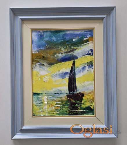 Tekst oglasa: <p>Ulje na platnu Jedro u tisini, prelepo umetnicko delo. Slika je uramljena u jako lep ram, dimenzije slike sa ramom 51 x 41. Privatna kolekcija.</p> |