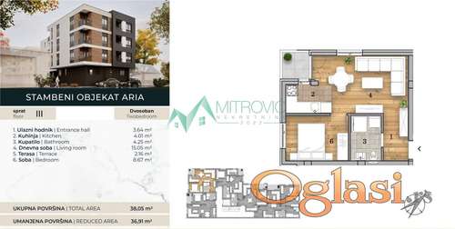Tekst oglasa: U blizini limana 4 odličan dvosoban stan u izgradnji,cena sa pdv-om za avansno plaćanje.Ovaj projekat predstavlja spoj savremenog arhitektonskog izraza, funkcionalnosti i visokog kvaliteta gradnje, stvarajući novo merilo modernog urbanog stanovanja. Kompleks se sastoji od dve lamele , ulične lamele prepoznatljive po modernoj fasadi i reprezentativnom pristupu, i dvorišne lamele osmišljene da pruži mir, privatnost i pogled ka zelenilu. Kompleks će biti prvoklasno opremljen -Nemački prozori,termoizolacija:deblji zidovi i dodatna fasadna izolacija od 10 cm donose znatne uštede u računima za grejanje i hlađenje,premium vrata sa zvučnom izolacijom,kalorimetri,estetika fasade i ulaza posebno dizajnirana za luksuzan izgled i topao doček; Premium kupatila opremljena prvoklasnim pločicama, Hansgrohe galanterijom, soft-close WC šoljom, i premium lavaboom sa fiokama; Termosilent međuspratna izolacija: Povećava kvalitet života i privatnost između spratova; Tarket višeslojni parket premium kvaliteta;One key lock sistem;Video nadzor.Mogućnost kupovine parking mesta u dvorištu zgrade. Postoji mogućnost kupovine uz plaćanje na rate ili putem stambenih kredita uz korekciju cena u odnosu na avansne uplate. Kontakt za sve dadatne informacije 0693831012 |