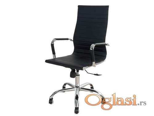 Tekst oglasa: <p><strong>Ključne Karakteristike i Funkcionalnost</strong></p> <ul><li>Konstrukcija: Čvrst metalni ram iz jednog dela i hromirana metalna zvezda postolja.</li> <li>Materijal: Tapacirana kvalitetnom Crnom eko kožom.</li> <li>Mehanizmi: Gasni mehanizam za podešavanje visine i funkcija ljuljanja.</li> <li>Rukohvati: Fiksirani, tapacirani, sa metalnim hromiranim naslonom.</li> <li>Sigurnost: Dvostruki sigurnosni točkovi sa kočenjem zavisno od opterećenja.</li> <li>Nosivost: Atestirana na 120 kg.</li> </ul><p> </p> <p><strong>Tehničke Specifikacije:</strong></p> <ul><li>Boja: Crna</li> <li>Materijal sedišta/naslona: Eko koža</li> <li>Materijal baze: Hromirana metalna zvezda</li> <li>Podesiva visina: Da (gasni mehanizam)</li> <li>Težina: 13 kg</li> </ul> |