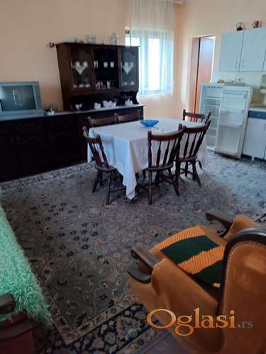 Tekst oglasa: <p>Kuca ima dva odvojena stana trofazna struja ,gas,voda kanalizacija priklucak za tel i satelitsku antenu.ravno dvoriste pod travom.u sporednoj ulici.ima garazu letnju kuhinju cardak svinjce i mali vocnjak iza kuce.za sve ostalo sto vas zanima pozovite</p> |