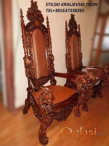 Tekst oglasa: <p>TRON,KRALJEVSKA STILSKA FOTELJA,puno drvo,rucni rad.</p> <p>Nov luksuzan stilski nameštaj ručne izrade visokog kvaliteta.</p> |