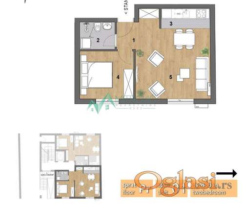 Tekst oglasa: Prodaje se moderan dvosoban stan u izgradnji na atraktivnoj lokaciji u blizini Bulevara Evrope u Novom Sadu. Stan se nalazi u savremenom stambenom objektu koji se gradi po visokim standardima kvaliteta i energetske efikasnosti. Grejanje je podno na gas. Uz svaki stan se ugrađuje klima uređaj. Funkcionalan raspored prostorija pruža maksimalnu iskorišćenost prostora i komfor za svakodnevni život. Stan je idealan kako za stanovanje, tako i kao investicija za izdavanje, zbog odlične povezanosti sa svim delovima grada. U neposrednoj blizini nalaze se marketi, škole, vrtići, autobuske linije, kao i svi sadržaji potrebni za udoban život. Postoji mogućnost doplate za parking mesto u dvorištu zgrade. Planirani rok završetka radova je septembar 2026. godine. Za više informacija kontaktirajte nas na 066223344 |