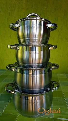 Tekst oglasa: <p>Set uključuje četiri različite šerpe:</p> <p>ø 16×10 cm – 1,5L: Manja šerpa idealna za pripremu umaka ili manjih količina hrane.</p> <p>ø 18×11,5 cm – 2,2L: Srednje velika šerpa, praktična za pripremu manjih obroka ili tečnosti.</p> <p>ø 20×12,5 cm – 3L: Veća šerpa za raznovrsnije kulinarske izazove i veće količine jela.</p> <p>ø 22×13.5 cm – 4L: Najveća šerpa u setu, savršena za pripremu obilnih jela za porodična okupljanja ili slavlja.</p> |