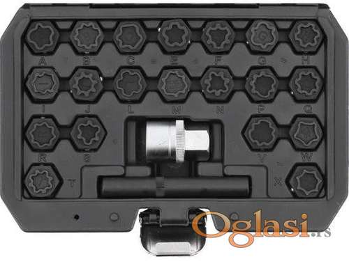 Tekst oglasa: <p>Set ključeva za skidanje sigurnosnih srafova AUDI 22 kom</p> <p>Set od 22 komada ključeva za skidanje sigurnosnih vijaka na tockovima vozila marke AUDI od 2002-2012.</p> <p>Koristi se za uklanjanje i ugradnju matica za zaključavanje točkova bez oštećenja matica ili točkova</p> <p>materijal: CrMo</p> <p>Novo i ne korišćeno </p> <p>Ukoliko zelite da porucite<br /> Posaljite poruku <br /> 1 Ime i prezime<br /> 2 Ulica i broj<br /> 3 Mesto i postanski broj<br /> 4 Broj telefona za kontakt</p> |