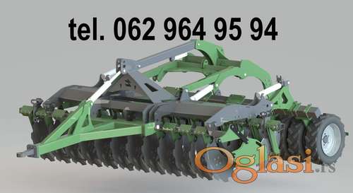 Tekst oglasa: <p>awemak kratke tanjirace Astra tel. +381 62 964 95 94</p> <p>radni zahvati : 2,5 , 2,7 , 3,0 ,4.0 metra</p> <p>standardna oprema :</p> <p>- dva reda tanjirace prcnik fi 560</p> <p>- radni zahvat 3 metra</p> <p>- hidropak 1,3 t</p> <p>- precnik valjka 500 mm</p> <p>- razmak izmedju redova tanjirace 900 mm</p> <p>- dva</p> <p>- kuciste bez odryavanja</p> <p>- gumeni valjak 12 tockova - sirina 3 metra</p> <p>dodatna oprema :</p> <p>- ama diskovi</p> <p>- zastita za diska fi 510</p> <p>- nsk /fkl kuciste bez odrzavanja</p> <p>- led osvetljenje</p> <p>- veryija bez hidropaka</p> <p>- hidraulicna stopa</p> <p>MASINE SU POLJSKE ODLICNOG KVALITETA DISKOVI SU OD VISOKOKVALITENOG CELIKA KALJENI OTPORNI NA HABANJE</p> <p>POZOVITE DA SE DOGOVORIMO</p> <p>tel. 062 964 95 94</p> <p>tel. +381 62 964 95 94</p> |