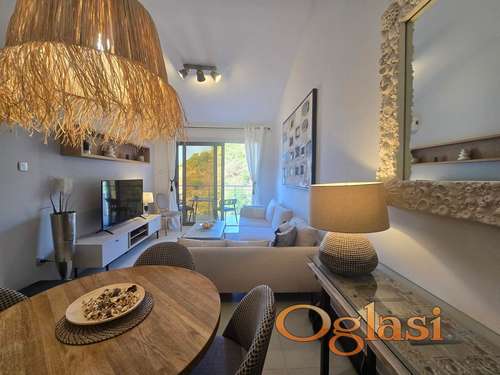 Tekst oglasa: <p>Luksuzni apartman u kompleksu s bazenom – Pržno, Plavi Horizont</p> <p>Veličina apartmana: 48 m²</p> <p>Sastoji se od dnevnog boravka s otvorenom kuhinjom, spavaće sobe i kupaonice. Ima veliku terasu s pristupom iz dnevnog boravka i spavaće sobe.</p> <p>Prozori nude pogled na planine.</p> <p>Nekretnina, dovršena 2023. godine, namještena je vrhunskim namještajem i uređajima (vrijednost namještaja preko 30.000 €). Vlasnici su je koristili nekretninu za odmor i nikada nije iznajmljivana.</p> <p>Apartman se nalazi na razini bazena.</p> <p>***Garažno mjesto uključeno u cijenu.</p> <p>Lift iz garaze</p> <p>Kompleks ima sezonski vanjski bazen, vrt i terasu, kao i besplatni Wi-Fi. Blue Horizon nalazi se samo 5 minuta hoda od centra Pržna. Plaža je udaljena 400 metara. Budva je udaljena 10 minuta vožnje.</p> |