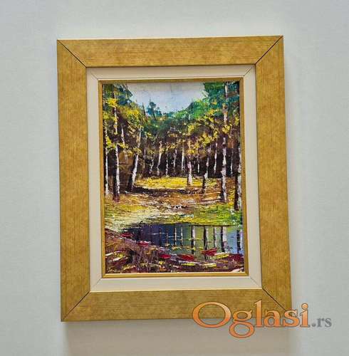 Tekst oglasa: <p>Ulje na platnu U srcu sume, prelepo umetnicko delo. Slika je uramljena u jako lep ram, dimenzije slike sa ramom 42 x 34. Privatna kolekcija.</p> |
