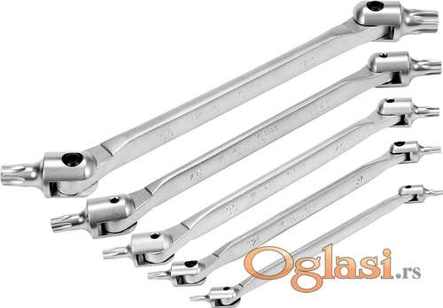 Tekst oglasa: <p>Set Torx ključeva sa spojem 5 kom T15-T60 <br /> Dizajniran za industrijske, radioničke i servisne aplikacije. • napravljen od CrV čelika, saten površina • opseg kretanja: 220° • pogodan za odvrtanje teško dostupnih šrafova.<br /> Sadržaj pakovanja<br /> T15 x T20<br /> T25 x T27<br /> T30 x T40<br /> T45 x T50<br /> T55 x T60<br /> Novo i ne korišćeno </p> <p> </p> <p>Proizvod: Poljska<br /> <br /> ---------------------------------Ukoliko zelite da porucite-------------------<br /> Posaljite poruku preko SMS PORUKE, VIBER<br /> 1 Ime i prezime<br /> 2 Ulica i broj<br /> 3 Mesto i postanski broj<br /> 4 Broj telefona za kontakt</p> |