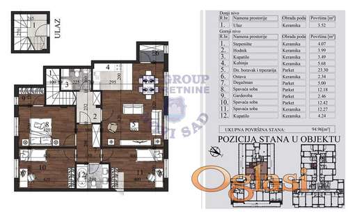 Tekst oglasa: <p>Predstavljamo novu izgradnju na Grbavici, najtraženijoj lokaciji u Novom Sadu. Lokacija je odlična za miran porodičan život, kao i za investiciju. U blizini sve što je neophodno, market, pijaca, autobuska stanica, osnovna, srednja škola, vrtić, centar. U pitanju je zgrada visokog kvaliteta. Svi stanovi od opreme poseduju: hrastov parket Ri, keramiku domaćih proizvođača I klase, kupatilske sanitarije I klase (Geberit konzolni duo fix vodokotlići), elektroinstalacije – modularni program Aling, unutrašnju stolariju – Medijapan, sigurnosna ulazna vrata, spoljnu stolariju – petokomorni PVC profili, klima uređaj, digitalni interfon, video nadzor. Mogućnost kupovine putem stambenog kredita, kao i povrat PDV-a za kupce prve nekretnine. Za sve dodatne informacije pozovite nas.</p> <p> </p> <p>KONTAKTIRAJTE NAS PUTEM:<br /> 064-80-333-30, 064-80-333-40<br /> 021-24-00-290<br /> EMAIL: lumo@ns-group.rs<br /> Agencijski ID: 545654</p> |