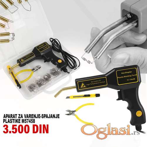 Tekst oglasa: <p>Zavarivač, stapler, heftalica za plastiku + LED svetlo za lakši rad. Neizostavan alat za svaku limariju i fizička lica koja žele da sami poprave polomljene plastične elemente. Idealno za ojačanje: branici, držači lampi, oklopi i razne vrste plastičnih delova. Zahvaljujući upotrebi spajalica, tačka spajanja postaje veoma izdržljiva. Spajalice deluju kao armatura u betonu, prenoseći zatezne sile koje deluju na element.</p> <p>Tehnički podaci:</p> <p>Maksimalna snaga: 50W</p> <p>Izlazna struja: 0-15A</p> <p>Napajanje 230V / 50Hz</p> <p>4 vrste spajalica za univerzalnu upotrebu.</p> <p>Set sadrži spajalice za plastiku različitih oblika i namena.</p> <p>Plastična spajalica "mali talas" - za jednostavne, najmanje zahtevne veze. Da bi se ojačala veza, blago je talasasta. Pogodan i za okrugle predmete.</p> <p>Plastična spajalica "unutrašnji ugao" - prilagođena za zavarivanje elemenata pod uglom, sa unutrašnje strane spoja.</p> <p>Plastična spajalica "spoljni ugao" - za spajanje elemenata pod uglom spolja. Nudi raspon od oštrih, ravnih do blago tupih uglova. Međutim, treba imati na umu da ga pripremite pre zavarivanja (propisno ga profilišite).</p> <p>Plastična spajalica "velikog talasa" - za najzahtevnije i najtrajnije veze. Njegov sinusni oblik obezbeđuje najveću snagu vezivanja. Pogodan i za okrugle predmete.</p> <p>NOVO - u fabričkom pakovanju</p> |