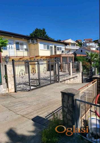 Tekst oglasa: <p>Prodaje se veoma atraktivna kuća apartmanskog tipa u mjestu Utjeha .</p> <p>Kuća se nalazi u mirnom dijelu okružena zelenilom i udaljena je od plaže Uvala Maslina 800m</p> <p>Veoma je prostrana i sastoji se od prizemlja i dva sprata .</p> <p>Posjeduje 6 parking mjesta i garažu.</p> <p><strong>Prizemlje:</strong></p> <p>3 spavaće sobe</p> <p>Dnevna soba sa kuhinjom</p> <p>Kupatilo</p> <p>Terasa</p> <p><strong>1.sprat:</strong></p> <p>Ima zaseban ulaz i sastoji se od apartmana sa spavacom sobom ,kuhinjom ,kupatilom i balkonom</p> <p><strong>2.sprat:</strong></p> <p>2 zasebna apartmana .</p> <p>Svaki ima sobu ,kuhinju ,kupatilo i balkon</p> <p>Dijeli ih hodnik</p> <p>Ova nekretnina je odlična investicija za izdavanje, ali isto tako može biti savršen dom za porodicu ili čak dvije porodice</p> |