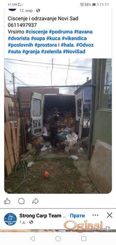 Tekst oglasa: <p>Čišćenje i odvoz – Novi Sad i okolina poziv na broj 0611497937</p> <p> </p> <p>Vršimo profesionalno raščišćavanje i odnošenje otpada sa:</p> <p>- podruma, tavana i šupa</p> <p>- dvorišta, kuća i vikendica</p> <p>- poslovnih prostora, hala i magacina</p> <p> </p> <p>Obuhvaćene usluge:</p> <p>- kompletno čišćenje i iznošenje stvari</p> <p>- odvoz šuta, granja i zelenila</p> <p>- sortiranje i utovar otpada</p> <p>- sopstveni prevoz i radna snaga</p> <p> </p> <p>Brzo i efikasno oslobađamo prostor, uređujemo dvorišta i ostave, kao i velike površine poput hala i poslovnih objekata. Usluga uključuje dolazak ekipe, utovar, odvoz i pravilno zbrinjavanje materijala.</p> |