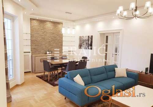 Tekst oglasa: Top lokacija.Luksuzan stan, komplet opremljen luksuznim nameštajem i belom tehnikom. Izdaje se prelep,salonski stan u srcu Vračara. Ima centralni salon,kuhinju, trpezariju, dve spavaće sobe sa garderoberima, toalet, terasu na koju se izlazi iz spavaće sobe, prostoriju za pranje veša. Izuzetno komforan, svetao, luks sređen, opremljen kvalitetnom belom tehnikom. Parking mesto je moguće obezbediti u obližnjoj javnoj garaži. Agencijska provizija 50% |