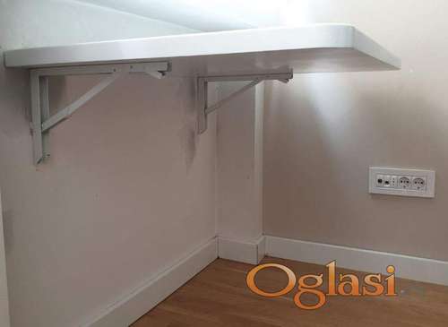 Tekst oglasa: <p>Mehanizam je potpuno nov i nekoriscen. Svaki je atestiran na 60kg po nosacu. Znaci sto sa dva nosaca izdrzava 120kg tezine statickog opterecenja (bez efekta poluge-zbog sirine stola).</p> <p>Preklopni mehanizam je metalni nosac koji sluzi za racionalizaciju prostora u vasem okruženju, i ima siroku primenu u domacinstvu (stanovima, terasama. . . ), industriji, itd.</p> <p>Ova sklopiva konzola je konstruisana tako da u nosecem stanju moze podneti staticko opterecenje oko 120kg po paru.</p> <p>Montaza je jednostavna sa vijcima kroz odgovarajuce otvore (tri za zid i tri za plocu). Kada zelite da postavite sto u gornji polozaj dovoljno je samo da ga podignete dok "klikne" i on se sam zabravi u gornji polozaj. Kada zelite da ga spustite samo pritisnete polugice na nosacima i spustite plocu.</p> <p>Mogu da se koriste za zidne stolove, police ili stolice.</p> <p>Slike nosaca su orginalne a slike primera montaza ovakvih stolova su sa interneta da imate pretstavu o cemu se radi (obicno prvo budu slike sa interneta a na kraju orginalne slike).</p> <p>Dimenzije se vide na slikama.</p> <p>Cena je za 1 komad.</p> <p>NAPOMENA za jedan sto Vam je potrebno dva nosaca. (za vece stolove preko 1.5m je obicno potrebno 3 nosaca)<br /> Znaci 800din x 2 = 1600din za jedan sto.</p> <p>Cene:<br /> Za 2kom (jedan par) 800din/kom<br /> za 4kom i vise 750din/kom<br /> za 10kom i vise 710din/kom.</p> <p>U ponudi imam i malo krace nosace koji su 50din jeftiniji, mozete ih potraziti u mojim oglasima (kraci su i namenjeni su za manje sirine stolova/polica uglavnom kao sank stolovi ili uze police).</p> <p>Dostava 370din nakon uplate na racun ili 570din pouzecem.</p> <p><br /> Za dodatne informacije i porucivanje najbolje pozovite na O649797622 (retko citam i odgovaram na poruke ovde).</p> |