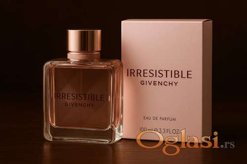 Tekst oglasa: <p>🌸 Givenchy Irresistible Eau de Parfum — miris koji spaja nežnost i energiju, stvoren za ženu koja osvaja bez truda.<br /> Ovaj parfem odiše čistoćom, ženstvenošću i neodoljivom toplinom.<br /><br /> Gornje note donose sočnu krušku i delikatnu ružu, dok srce obavija puderasti iris i blagu cvetnu slast. Baza od mošusa i kedra daje parfemu toplinu i trajnost koja ostaje satima na koži.<br /><br /> ✨ Miris je svetao, moderan i romantičan, savršen za svaki dan, ali i za posebne trenutke.<br /> ✨ Za ženu koja voli da bude primećena — nežno, ali sigurno.<br /><br /> Pafremi sa originalnom mirisnom notom.<br /> Intenzivni miris parfema se zadrzava na koži ceo dan, a na odeci i po nekoliko dana.<br /><br /> Originalno pakovanje sa celofanom i bar kodom.💯</p> |