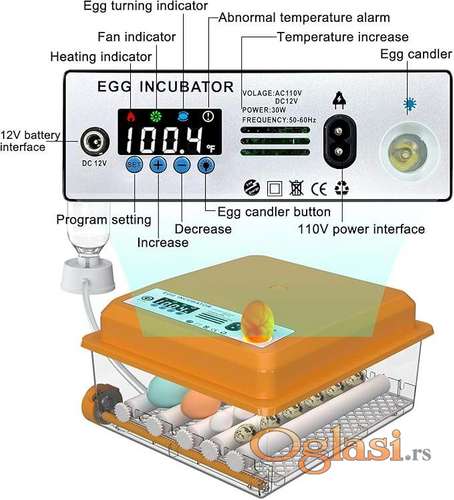 Tekst oglasa: <p>Prodajem nove mini inkubatore. ,automacke od 16 kom.12 kom.5kom. kokošijih jaja-prepelice više.</p> <p>1. 16 kom 8750 din u plavoj boji kućište. Ima na stanju plavo kućište.</p> <p>2. 12 jaja 6500 din.Inkubator je namenjen hobistima i edukaciji dece .Automacki je i daje rezultate ako se koristi po uputstvu.</p> <p>Ima na stanju .</p> <p>3. 12 Jaja sa vlagomerom 7750 din. Ima na stanju.</p> <p>4. 7 jaja 3500 din Namenjen deci i hobistima.Ima na stanju.</p> <p>5. 5 jaja 3200 din. Namenjen deci i edukaciji idealan poklon detetu koje voli životinje.Ps. jaja nemogu biti kupovna nego oplođena. Ima na stanju.</p> <p>6. 56 jaja nosač sa motorom 3200 din.Nosač je namenjen za izradu inkubatora sam svoj majstor što se u praksi dobro pokazalo.</p> <p>Za kupljenih 5 kom+ 10 % popusta.<br /><br /> Karakteristika za automacki inkubator 36 jaja.- Kineski dokazan u praksi. </p> <p>Cena 12250 din,plavo kućište ima na stanju.</p> <p><br /> 1. Visoko efikasan: Inkubator za jaja je višenamenski, sa visokom stopom inkubacije i automatskom izolacijom. Pogodno za kuću, laboratoriju ili malu farmu.<br /> 2. Okretanje od 360 stepeni: Inkubator za jaja koristi valjak za 360 stepeni da okreće jaja i održava proces inkubacije ravnomernije od ostalih iz male radinosti.Tačnije 100 % programiran u zavisnosti koja jaja inkubirate.<br /> 3. Karakteristika: Digitalni inkubator za jaja pruža bolje prepoznavanje vrsta, karakteristika i navika životinja koje nose jaja.<br /> 4. Podešavanje: Automatski inkubator od 16 jaja sa podesivim razmakom ležišta za jaja, koji se može podesiti prema veličini različitih jaja za uzgoj. Ps. mogućnost postavljanja jaja u dva reda tj. zbog mogućnosti ne oplođenih jaja da nebi gubili pun kapacitet. Neoplođena jaja izbacite i na njihovo mesto stavite oplođena.Opet napomena ovo nije po uputstvu prizvođača nego na Osnovu ličnog iskustva.Ne pretrpavati maksimalno 46 kokošijih jaja da se ne opterete roleri i motor.<br /> 5. Široka upotreba inkubiranja jaja od kokošijih, pačijih,prepeličijih,guščijih čak i jaja papagaja. 100% provereno.</p> <p>Najbitnija napomena jaja moraju biti oplođena i ne starija od 7 dana od nošenja čuvana u adekvatnim uslovima,pravilnog oblika- bez nabora ,čista.Svaki sledeći dan % izleganja se smanuje.Za ne uspešnu inkubaciju ne može da bude kriv samo inkubator.<br /><br /> Specifikacija:<br /> Vrsta predmeta: Inkubator za jaja<br /> Materijal: ABS<br /> Utikač: EU utikač 100-240V<br /> Glavni tehnički indikatori:<br /> 1. Raspon mjerenja temperature: 0~99,9 ℃<br /> 2. Preciznost mjerenja temperature: ±0,1 ℃<br /> 3.Preciznost Merenja vlage 5%<br /> ℃ Broj signala kontrolnog izlaza: 6 (grijanje AC220V, grijanje DC12V, okretanje jaja, ovlaživanje, svijetla jaja)<br /> 6. Kontrolna izlazna struja maksimalne opterećenja: grijanje S IA AC220V: ovlaživanje <0.1A dcv; Jaja za okretanje S0.1A DCSV; Ventilator za cirkulaciju S 0.3A DC12V; <0,1 DC3V trepereća jaja<br /> 7. Ciklus ljuljanja jaja: podesiv 0-999 minuta -Fabrička postavka je 75 minuta.<br /> 8. Vrijeme okretanja jaja: podesivo 0-999 minuta (fabrički postavljeno 90 minuta)<br /> Postupak manipulacije jajima<br /> Lampa za proveru jaja ugrađena na inkubatoru radi 100 % efikasno Napomena(u mračnoj prosoriji)<br /> Pileći embrion u 8 dana inkubacije, embrion patke u 9 dana, embrion guske u 11 dana.<br /> Svrha je posmatranje razvoja embriona i otkrivanje jaja bez sperme, mrtvih embriona<br /> i razbijenih jaja. Embrioni sa normalnim razvojem u ovom trenutku imaju svetlu vaskularnu radijalno raspoređenu mrežu, pri čemu difuzna čini 4/5 tela jaja.</p> <p>Šaljem postexpresom , moguće i lično preuzimanje.</p> <p>0604462217</p> |