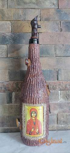 Tekst oglasa: <p>Ognjena Marija ukrasna slavska flasa, rucni rad, jedinstven i unikatan poklon za slavu ili ukras za vas dom.</p> <p>Flaša je na vasoj adresi za 1-2 dana, šaljemo kurir sluzbom, post expresom, moze i lično preuzimanje Stari Slankamen (opština Inđija).</p> <p>Poziv, sms 064/444-3438</p> |
