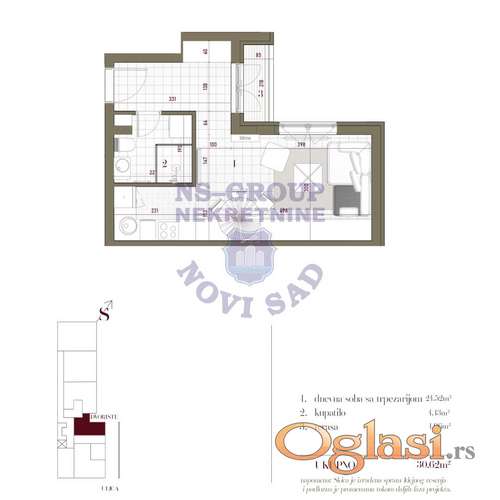 Šifra oglasa: 03-3674256 Datum postavljanja oglasa: 24.10.2025 Kontakt: ARTS nekretnine PJ. NS-GN DOO. Upisan U Reg. Pos. Broj 711 Telefon: 0212300030 |