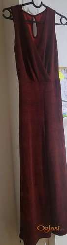 Tekst oglasa: <p>Kvalitetan kombinezon, bordo boje, sa detaljima crnim, Uni veličine, u struku guma, laganog materijala, šire nogavice.Materijal viskoza, elastin. Nenošen.</p> |