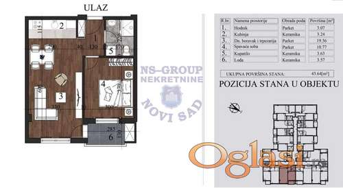 Tekst oglasa: <p>Predstavljamo izgradnju na Grbavici, najtraženijoj lokaciji u Novom Sadu. Lokacija je odlična za miran porodičan život, kao i za investiciju. U blizini sve što je neophodno, market, pijaca, autobuska stanica, osnovna, srednja škola, vrtić, centar. U pitanju je zgrada visokog kvaliteta. Svi stanovi od opreme poseduju: hrastov parket Ri, keramiku domaćih proizvođača I klase, kupatilske sanitarije I klase (Geberit konzolni duo fix vodokotlići), elektroinstalacije – modularni program Aling, unutrašnju stolariju – Medijapan, sigurnosna ulazna vrata, spoljnu stolariju – petokomorni PVC profili, klima uređaj, digitalni interfon, video nadzor. Mogućnost kupovine putem stambenog kredita, kao i povrat PDV-a za kupce prve nekretnine. Za sve dodatne informacije pozovite nas.</p> |