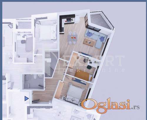 Tekst oglasa: Na prodaju dvoiposoban stan u novogradnji, u blizini Keja, 68 m2. Stan se nalazi na 1. spratu stambeno -poslovnog objekta i sastoji se od dnevnog boravka sa trpezarijom i kuhinjom, dve spavaće sobe, kupatila, toaleta i terase. Objekat je Po+P+5 i izgrađen je po visokim standardima savremene gradnje. Zidana je termo blokovima sa izolacijom od mineralne vune, bešumni lift. Spoljnja stolarija je aluminijum-drvo, alu-roletne sa elektropodizačima, unutrašnja vrata su drvena, obložena poliuretanom dok su spoljna vrata atestirana na PP zaštitu. Na podovima je troslojni, hrastov parket sa zvučnom izolacijom. U kupatilu je keramika prve klase, ugradna WC šolja i vodokotlić, tuš kabina je staklena sa linijskim slivnikom, tuš baterije Grohe. Grejanje i hlađenje regulisano je termo pumpama i svaka prostorija ima svoj fan-coil uređaj.Rok završetka je kraj 2025. godine Za kupce prve nepokretnosti povrat pdva. Moguća je kupovina putem stambenog kredita. Ovo je samo deo naše ponude, za više informacija, stojimo vam na raspolaganju. |